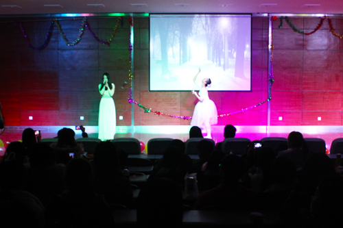 报告厅隆重举行。2013级辅导员贾银兰出席晚会。数百名同学欢聚一堂,载歌载舞,共同迎接新年的到来。