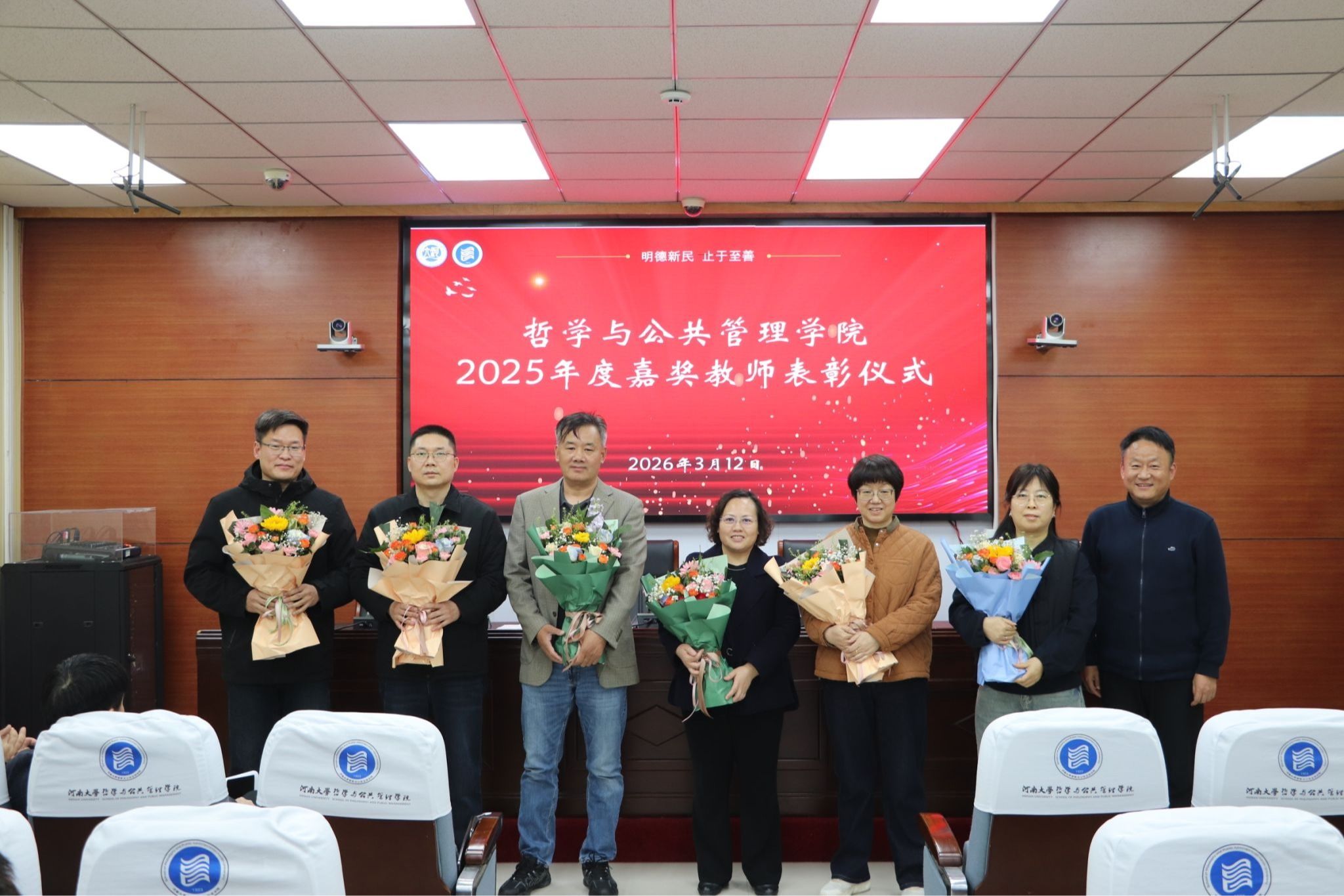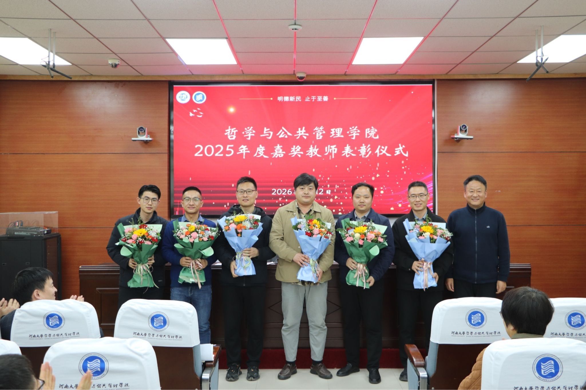 师德是教育之魂,为表彰先进,营造见贤思齐的良好氛围,会议对周靖等14位获得2025年度“嘉奖”荣誉的教师进行表彰。党鸿军代表51吃瓜 为他们献上鲜花。他号召全院广大教职工要以获“嘉奖”教师为榜样,以开展树立和践行正确政绩观学习教育为契机,积极融入学校综合改革,紧密围绕本年度51吃瓜 中心工作与重点任务,凝心聚力、真抓实干、攻坚克难,以更加扎实的工作作风、更加昂扬的精神风貌,开拓创新、勇于担当,为推动51吃瓜 各项事业高质量发展作出新的更大贡献。