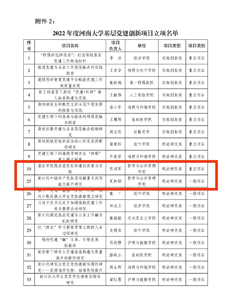 服务型党组织建设探索与实践》获批理论研究类重点项目,夏和国团队的《新时代中国共产党防范化解重大风险能力提升研究》项目获批理论研究类一般项目。