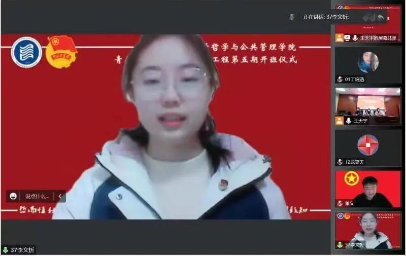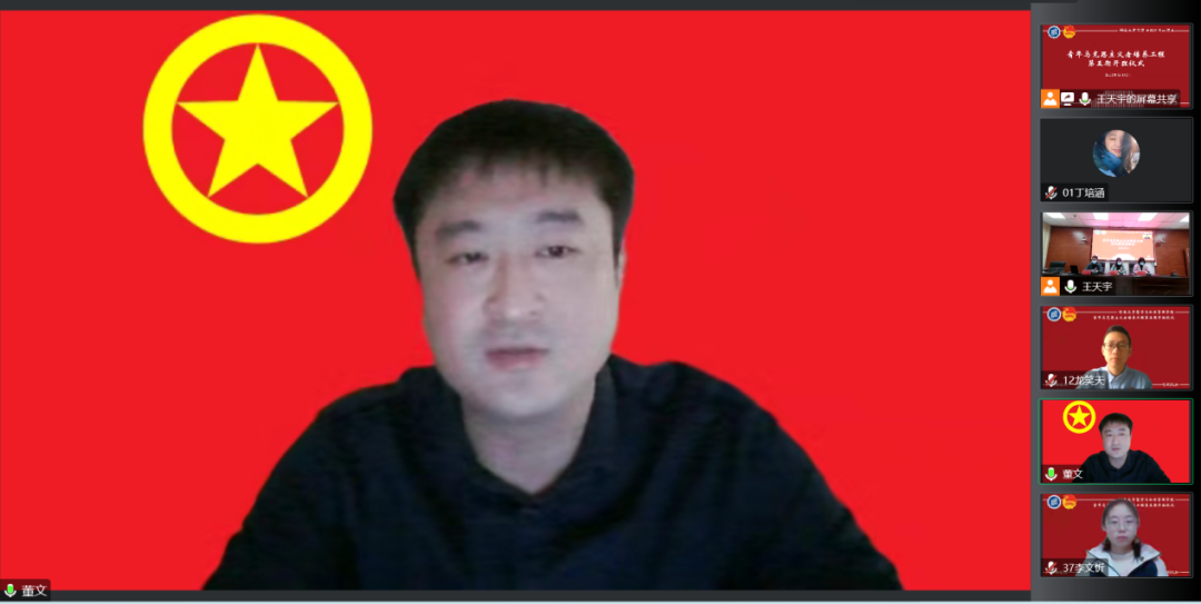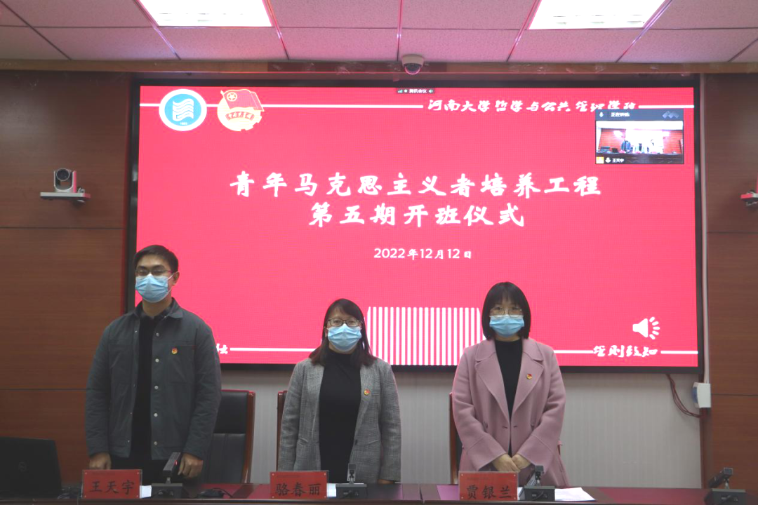 青年马克思主义者培养工程第五期培训班开班仪式于第一会议室举行。校团委副书记董文、院党委副书记骆春丽、院党委办公室主任贾银兰出席会议,培训班全体学员以线上的形式参会。仪式由院团委副书记王天宇主持。