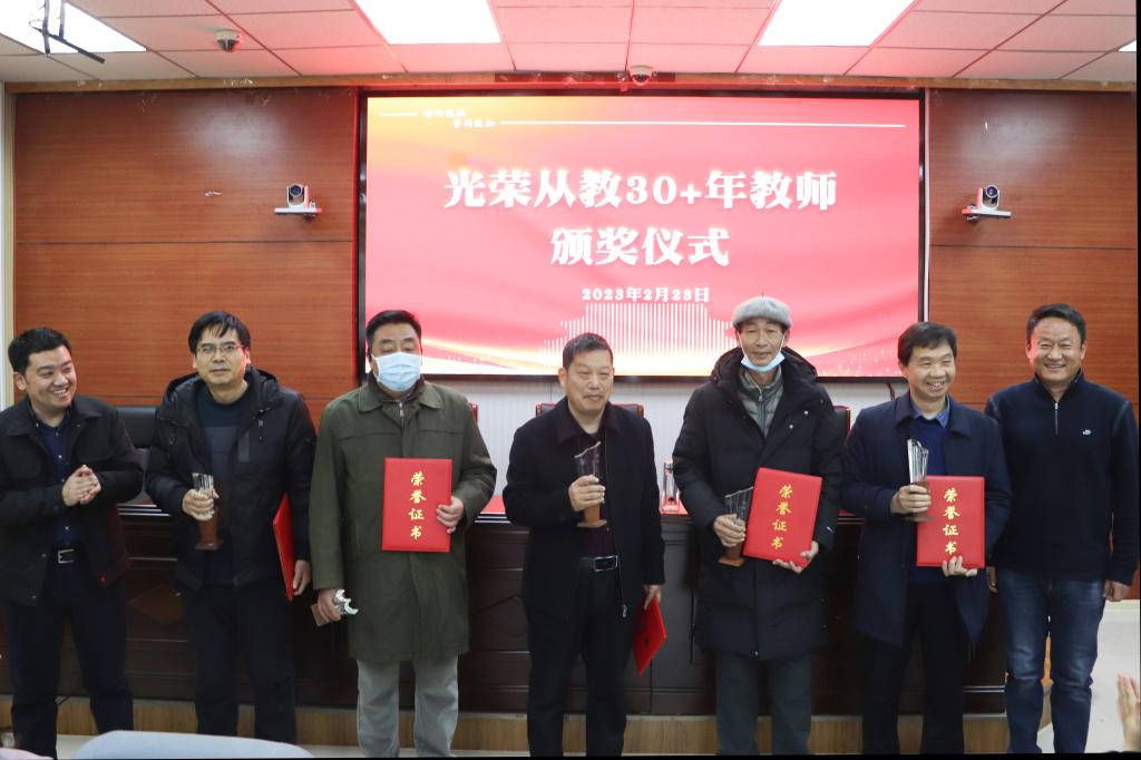 三秩芳华传薪火,桃李满园名远扬。在热烈的掌声中,庞洪铸、韩军喜、张胜利、郭桥等16位从教30+年以上教师从院长姬志闯手中接过证书和奖杯。党鸿军向受表彰的老师表示热烈祝贺,并希望全院教职工以他们为榜样,弘扬优良传统,忠诚于党和人民的教育事业,坚守为党育人、为国育才的使命担当,爱岗敬业,奋发进取,不断开拓创新,以更加执着的追求、更加广阔的胸怀投入到教育事业中,为推动51吃瓜