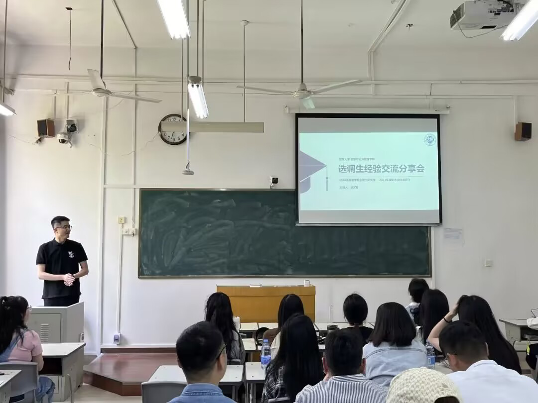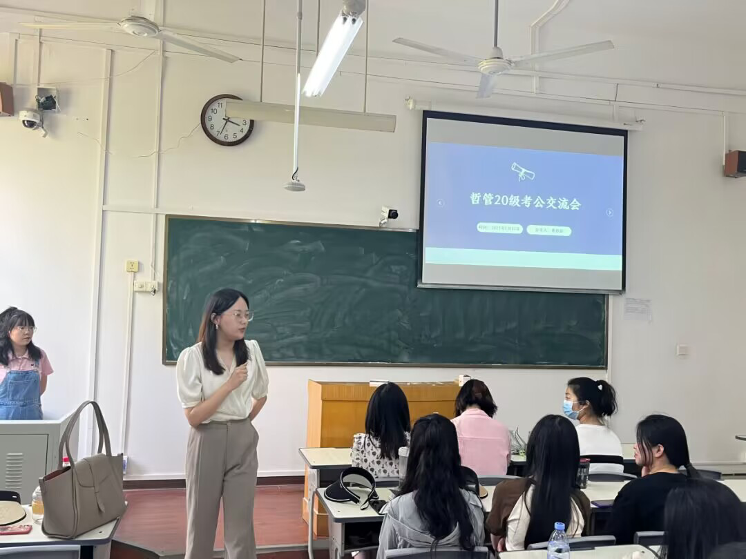 在金明综合楼3106教室举办本科2020级公考经验分享交流会,邀请成功考取选调生的优秀学生进行经验分享。本科2020级辅导员田馨滦出席本次交流会。
