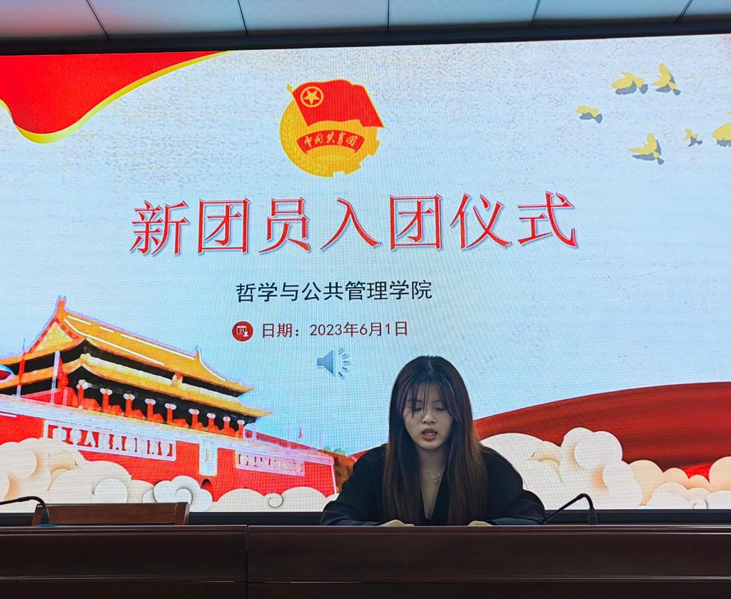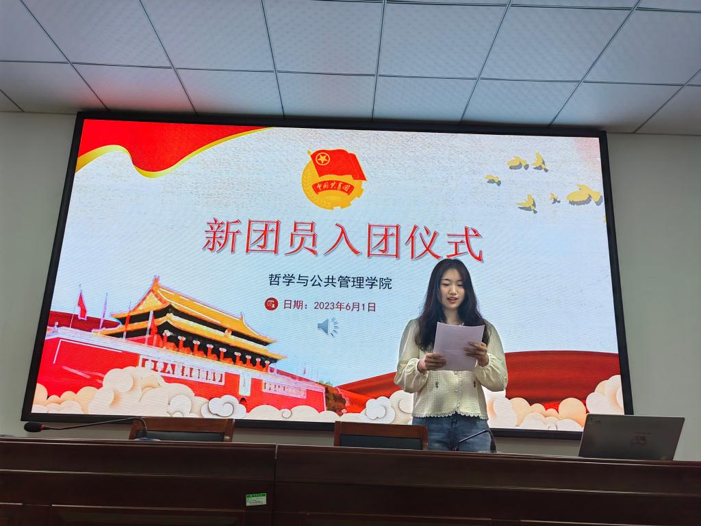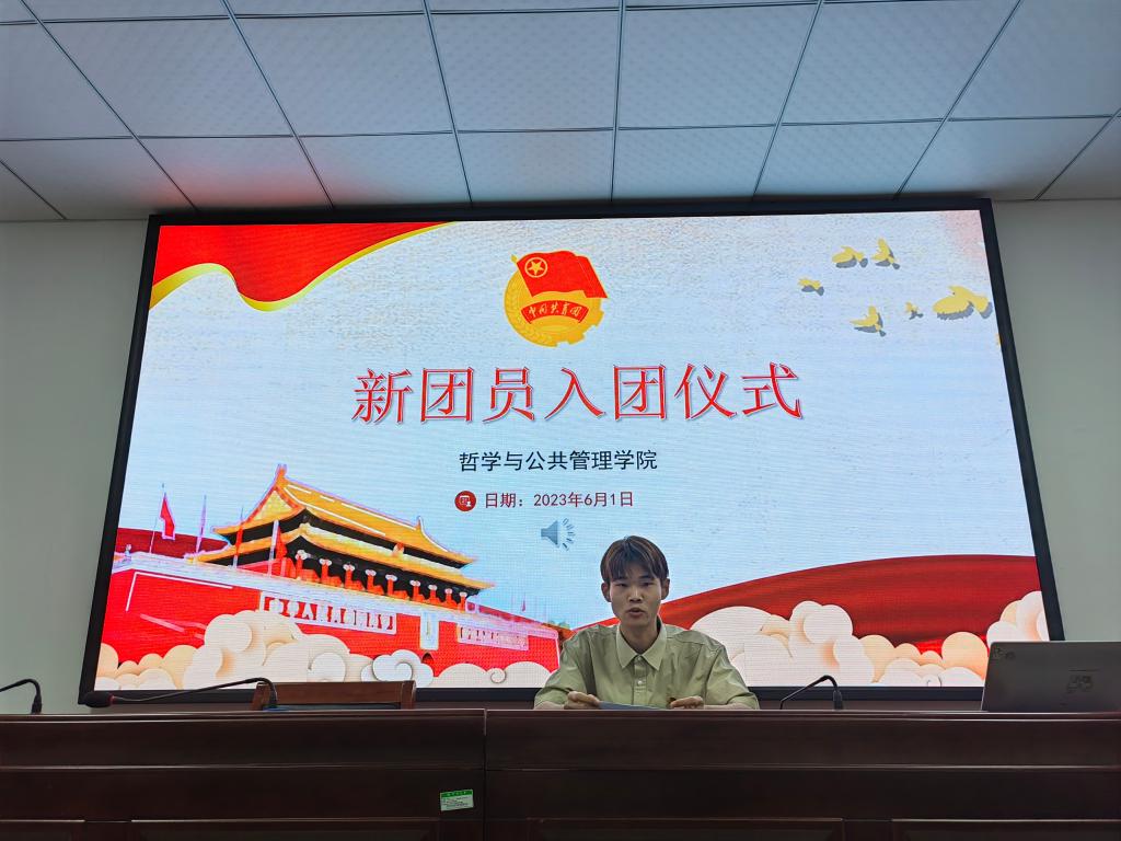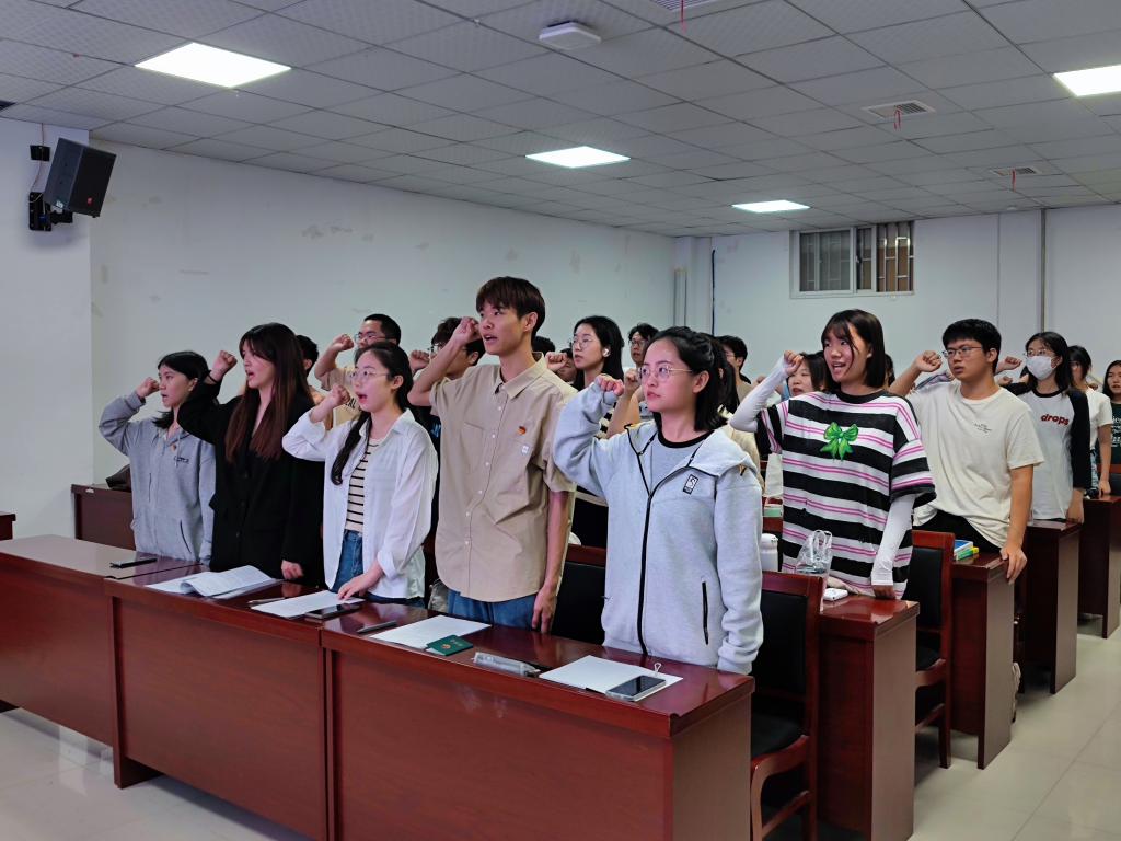 在第三会议室举行2023年上半年新团员入团仪式。本次入团仪式由本科2021级朱佳凝主持。