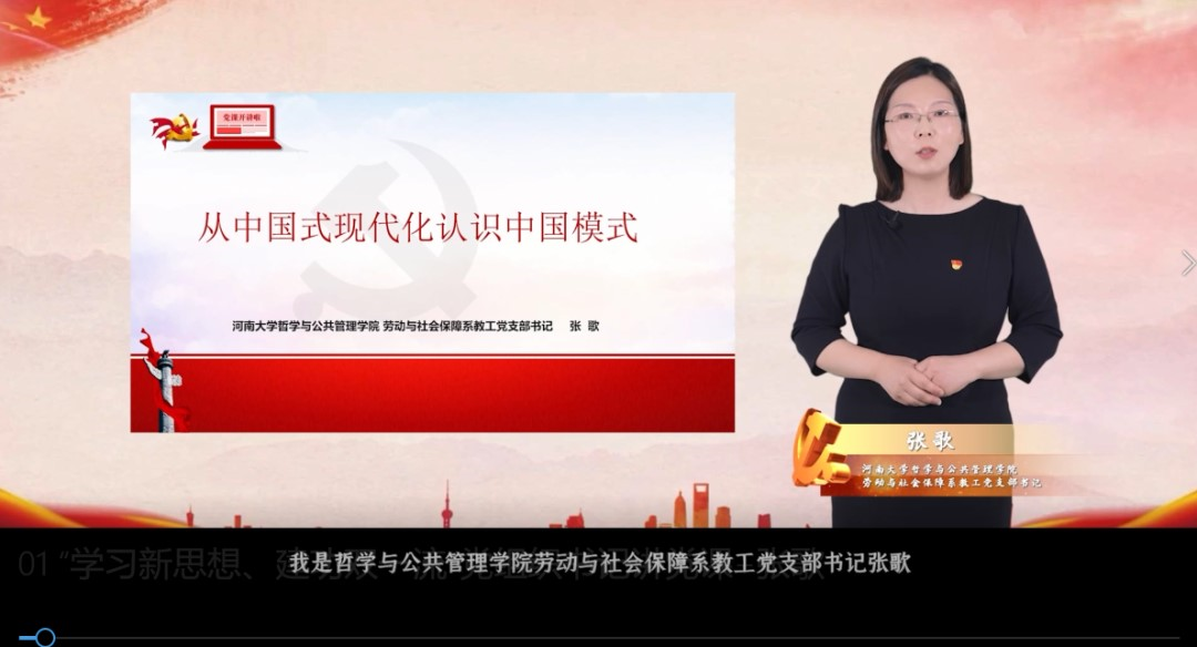 组织各支部书记积极参与“学习新思想、建功双一流”党组织书记讲党课活动。劳动与社会保障系教工党支部书记张歌、社保本科党支部书记田馨滦分别录制了《从中国式现代化认识中国模式》《凝心聚力为人民 砥砺奋进谱华章》党课微视频,通过创新传播手段和话语方式等举措,推进党的创新理论“飞入寻常百姓家”。