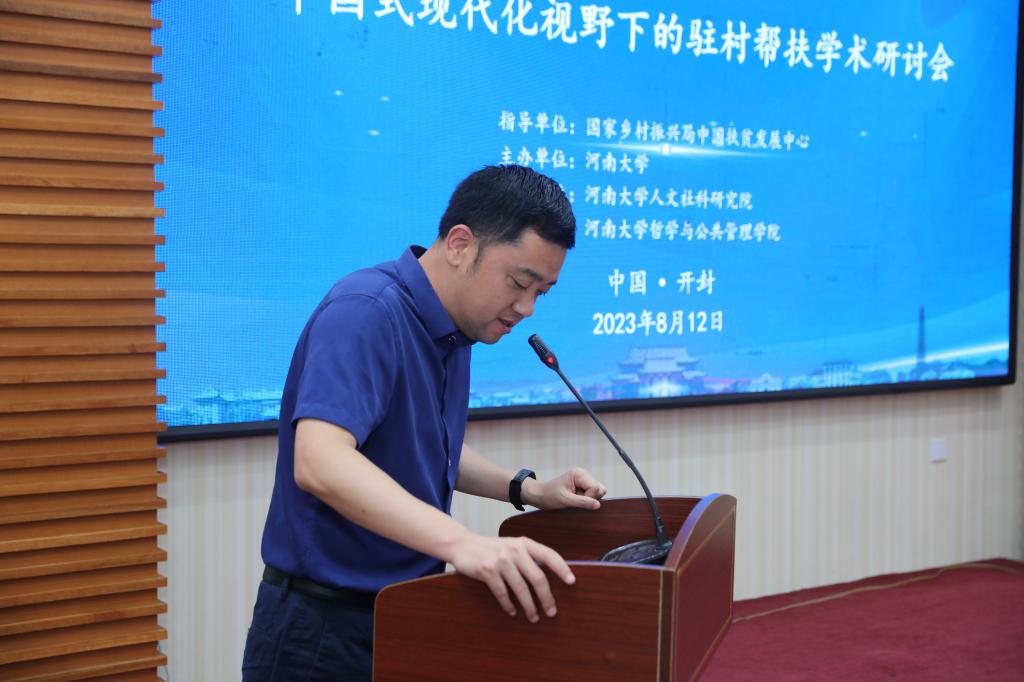 交流及条件保障等方面,对中国式现代化和乡村振兴研究提供支持,为新时代“三农”发展贡献河大智慧。中国扶贫发展中心副主任谢中武同志在致辞中介绍了驻村帮扶发展历程及打赢脱贫攻坚战后驻村帮扶工作现状和未来发展,指出此次研讨会的召开将对驻村帮扶工作产生积极影响。河南省乡村振兴局一级巡视员方国根同志在讲话中介绍了河南省驻村帮扶基本情况、主要举措与成效、经验与启示。开幕式由*51吃瓜