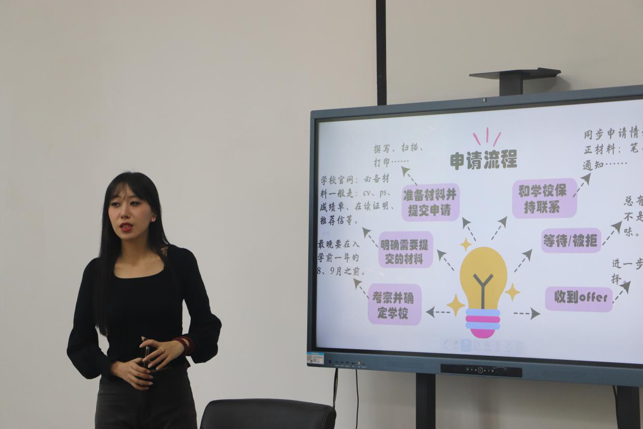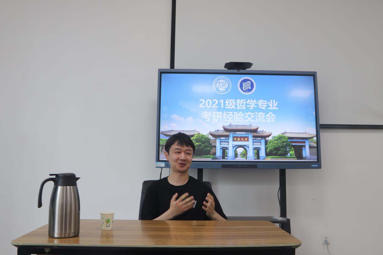 史思维,把握人物思想的脉络与延续。毛洋洋以己为例,为大家介绍各学科的复习规划。他特别强调心态的重要性,建议同学们一方面要把握节奏、调整状态,另一方面可寻找合适的“考研搭子”,共同备战,互相鼓励。李相云向同学们全面详细地介绍了海外研究生申请的流程和特点,明确不同院校的要求,剖析每一种选择的利弊。她强调,等待offer的过程难免焦虑,但我们可以保持“名不显时心不朽”的坚定,以“黄檗万里路,道苦真无极”的执着,等来“槐根梦觉,苦尽甘来”。现场答疑讨论环节,同学们踊跃提出自己在备考中的困惑,老师和考研代表们对这些问题进行解答,气氛积极活跃,疑虑一一明了。