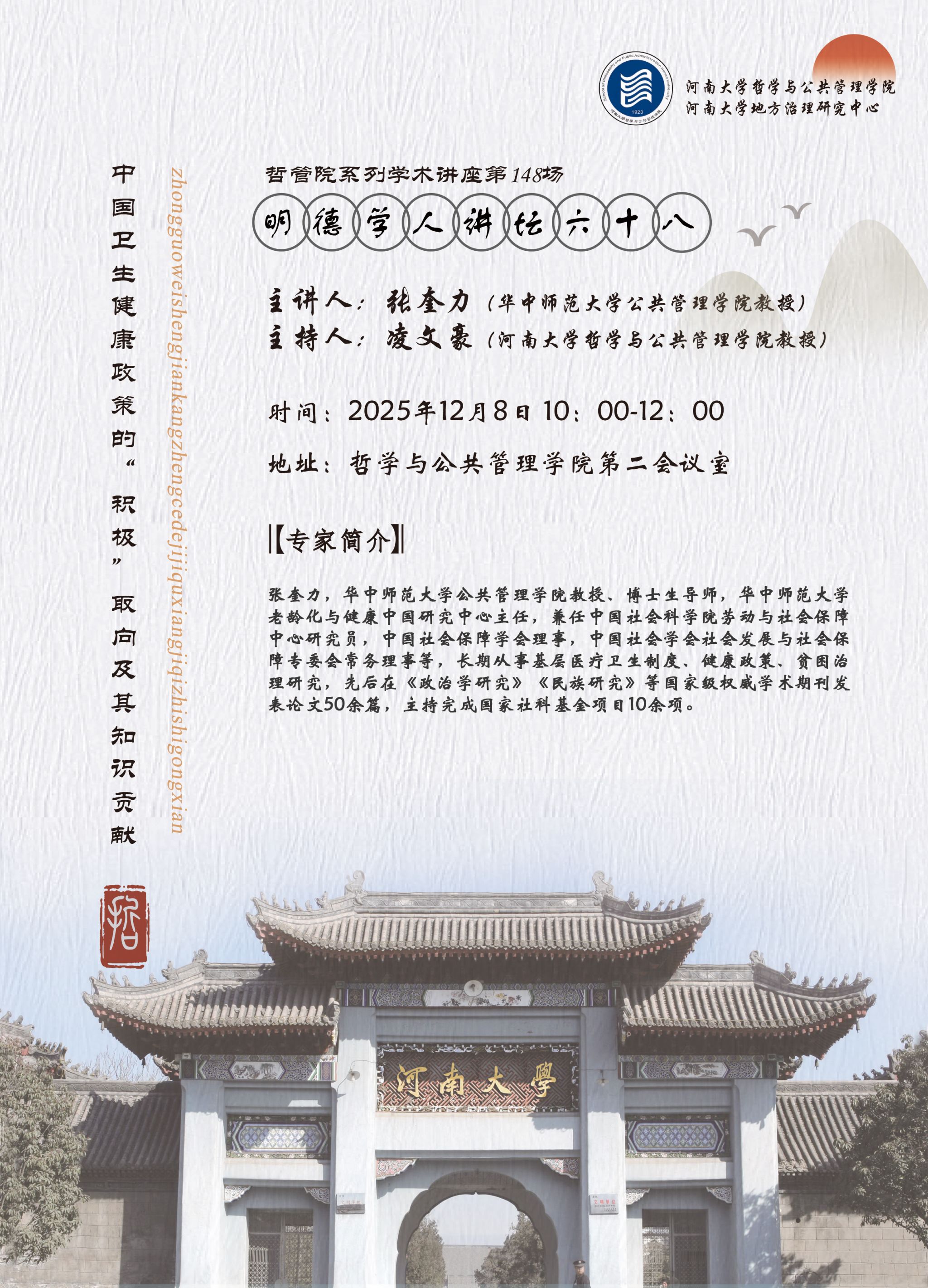 张奎力,华中师范大学公共管理51吃瓜 教授、博士生导师,华中师范大学老龄化与健康中国研究中心主任,兼任中国社会科51吃瓜 劳动与社会保障中心研究员,中国社会保障学会理事,中国社会学会社会发展与社会保障专委会常务理事等,长期从事基层医疗卫生制度、健康政策、贫困治理研究,先后在《政治学研究》《民族研究》等国家级权威51吃瓜 期刊发表论文50余篇,主持完成国家社科基金项目10余项。