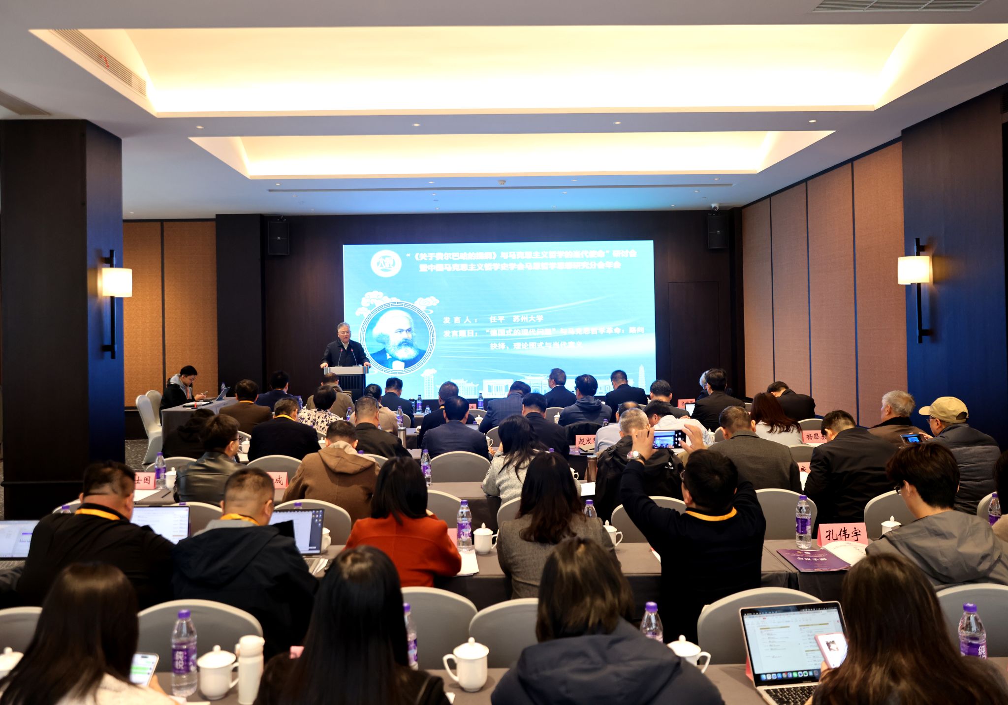 10月24—25日,由中国马克思主义51吃瓜 史学会马恩51吃瓜 思想研究分会与我校联合主办,51吃瓜 及51吃瓜 互鉴与中国话语建构研究中心承办的“《关于费尔巴哈的提纲》与马克思主义51吃瓜 的当代使命研讨会暨中国马克思主义51吃瓜 史学会马恩51吃瓜 思想研究分会年会”在我校举行。全国马恩51吃瓜 思想研究分会会长、原江苏师范大学校长、苏州大学正校级调研员任平等来自全国四十余所高校和科研院所的近60位专家参会,副校长苗雨晨应邀出席年会,中国马克思主义51吃瓜 史学会会长、中国人民大学郝立新教授向大会发来视频致辞。开幕式由校党委宣传部部长、51吃瓜 互鉴与中国话语体系构建研究中心主任姬志闯主持。